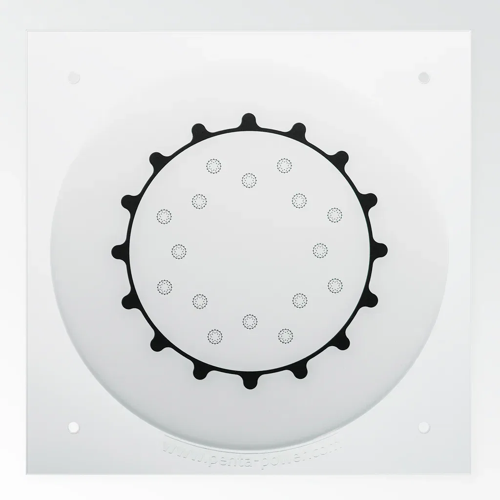 Der Penta Power Home Tag haftet nicht an porösen Oberflächen wie Holzbalken. Aus diesem Grund wurde eine Plexiglas-Befestigungsplatte mit vier vorgebohrten Löchern entwickelt.